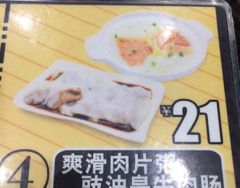 肠粉味道不错,牛肉肠肉挺多的,粥量多,但肉少。
