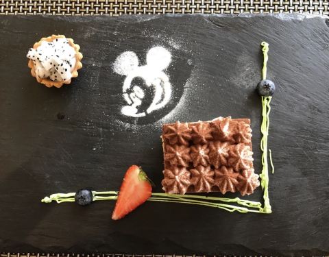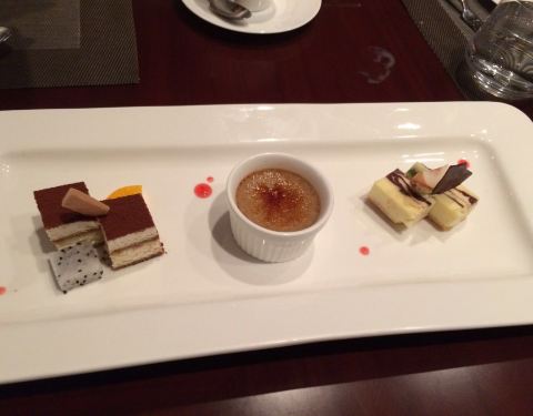很久之前在某团购网站买了这家餐厅的双人午餐,最近终于抽了时间过来吃饭了。餐厅位于天河区这一个城市中心地带,在正佳广场的斜对面,在方圆奥克伍德公寓的16楼,这里是一家五星级的酒店和公寓。餐厅是从公寓的电梯上去,由于公寓大堂不太明显,大家找不到可以问一下人,应该是从中国银行旁边的小大堂进去,坐那里任何的一台电梯都可以。电梯出来转右就是餐厅入口,餐厅中午12点营业,没有咨客的,你往里走见到服务员,跟任何一个说都可以,他们见到有客人进来,就会马上为你安排座位。餐厅的餐位有很多种,有四人的小方桌,有两排的沙发位,也有长排的桌子,餐厅可以根据客人的需要马上移动桌子,很人性化。 中午本来就有套餐,不过直接到餐厅点的话,就是138元一位,所以说,买了团购划算很多,按照餐厅的要求,使用团购餐的需要提前一小时订餐,可以顺便订了餐位,景色好一些的就是窗边位了。套餐包括沙拉、汤、面包、主食、甜品和咖啡茶,种类很齐全,分量也很满足。沙拉的摆盘很精美,用料也很新鲜;面包两个人配了三个小包,夹了牛油一起吃好吃,很松软;汤是蘑菇汤,很浓的蘑菇味,放了一些面包干,增加了脆脆的口感;主食我选了西冷牛扒,要的是七成熟,因为有小朋友在所以不要有血了,但是端上来的虽然很大一块,但是都已经变老了,吃起来已经很硬,沾牙,没有了牛扒本来的鲜味;甜品非常棒,还印了一个米奇老鼠的头像,好惊喜。