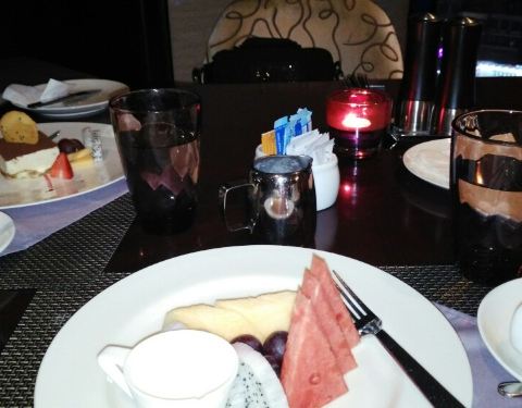 - 一进来餐厅的气氛确实比较浪漫,灯光柔和非常适合自拍,非常喜欢这样安静的感觉