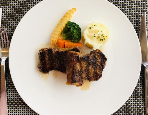 估计晚餐的感觉应该会更好。 安格斯西冷扒品质不错,第一啖外表焦脆,肉质鲜嫩。态度亲切友好,服务妥帖