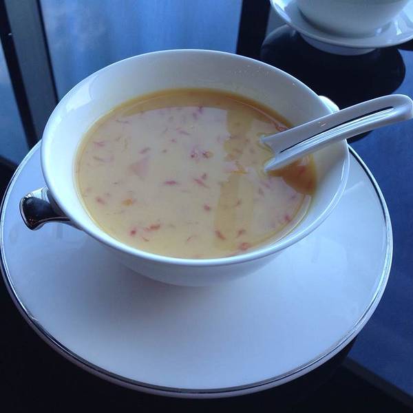 关于环境方面,从四季酒店首层大堂上到70层大堂,仿佛进入一个冰雪的世界,白花花的大理石是空中大堂的主角,让人高冷.转电梯到达72层中餐厅,餐厅深红色的中国红基调,加上深色沉稳的木桌椅,让人觉得温暖,仿佛一下子春回大地,和中餐热闹温馨的氛围很搭配。相较于西餐多以2-4人桌为主,这里更强调的是朋友们的聚会、家族的聚餐,所以桌子多数以6人圆桌为主,大厅中配有一张可供近10人用餐的古老树根造型木桌,另外设有6个包房。每个包房都享有无敌的江景,而大厅最好的座位是靠近床边的江景位置,为数不多,只占餐厅座位的1/3,最好提早预订!云端上的风景,加上云端上的美食,在广州真的是数一数二的棒。
