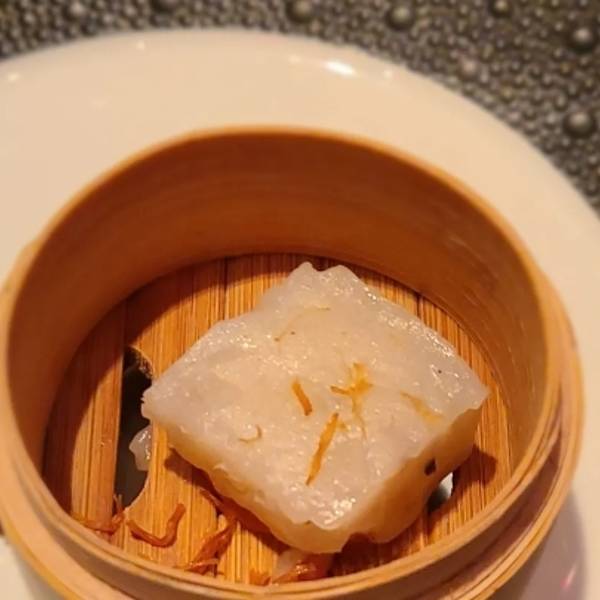 #瑶柱肉饼#很精致的摆盘,瑶柱非常鲜甜,很大颗,是新派的粤菜。
