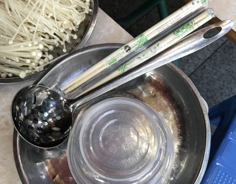 金针菇和面筋放下去煮,入味之后特别好吃。朋友推荐来的,说是这附近比较出名的一家店
