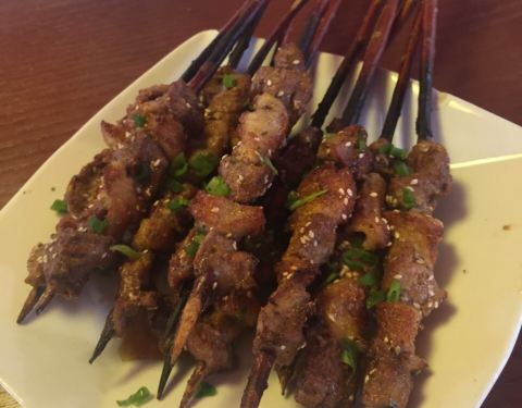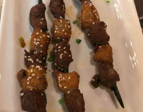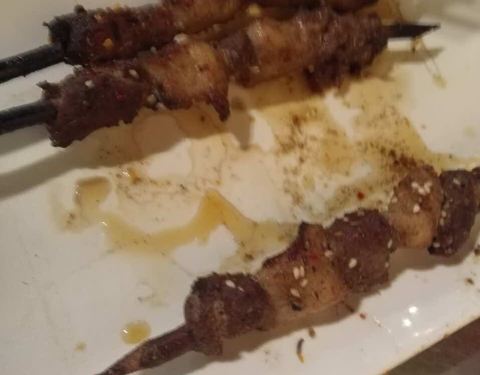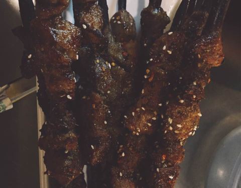 吃了好多年的羊肉串,一串五块肉,两大块肥肉肉,跟以前比差太远啦,不敢恭维啦