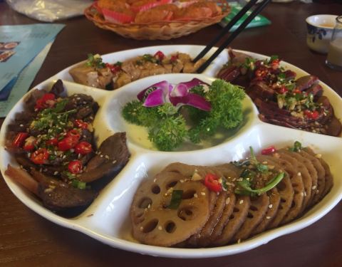 - 凉拌皮蛋是日常最爱,也吃了不少。 羊杂碎汤味道不错,咸淡适中,口感刚好。 菜品很多。 有点像恐龙