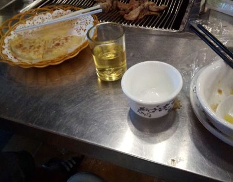 进入门口就已经闻到一股羊的噪味,感觉吃完周身都是这个味道,定的是一间能容纳20几个人的房间,在二楼.必备烤全羊很快就上了,听说有表演,但是我们人太多,位置不太就没机会看了。 架子下边是预先放好的炭,羊...进入门口就已经闻到一股羊的噪味,感觉吃完周身都是这个味道,定的是一间能容纳20几个人的房间,在二楼.必备烤全羊很快就上了,听说有表演,但是我们人太多,位置不太就没机会看了。 架子下边是预先放好的炭,羊肉要一边热着一边吃,凉了就不好吃了,可是大家都是围着桌子坐的,那个热气蹭蹭的冒上来,室内的空调又不够给力,最后把窗开了,炭撒了,才能活过来(注意在室内用炭火一定要通风) 因为人多,所以就点了很多不同的菜色,羊肉串,羊杂汤,羊肉饺,羊肉包,四季豆,羊一锅,羊蝎子,蒙古奶茶咸的, 原谅我有些菜叫不出名字,当时也喝多,只记得这些