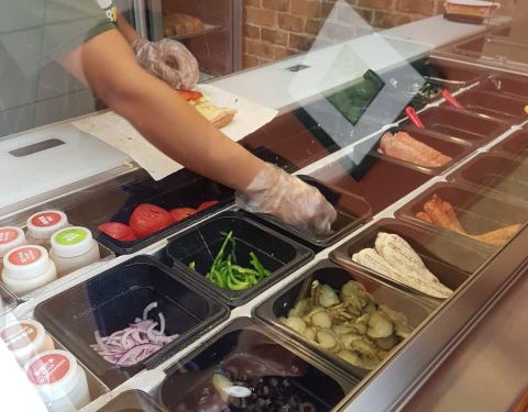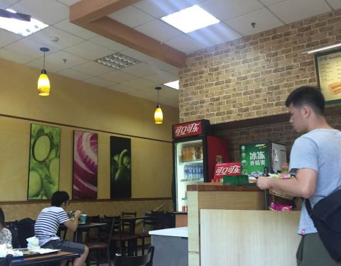 挺好找的,招牌比较醒目,半开放式,人流不算很大,可能是因为过了饭点的原因。三十八一份,饮料免费续杯,里面的酱料,食材选择还挺多的,总体来说还可以。