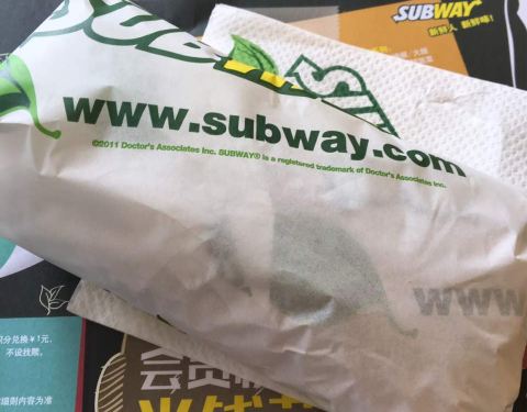 周末这边没什么人,开业的店铺不多,还好有赛百味来了就能吃。试一下口味。