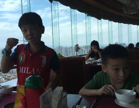 位置在国际大酒店25层,是个旋转餐厅。旋转餐厅转的太快了,有点头晕,而且去拿餐如果回来晚一点可能会找不到自己的地方的, 价格不算贵吧,就是品种不是太多。海鲜主打鱼和贝类,谁说有螃蟹的,连个壳都没见。粉丝扇贝卖的是粉丝吧,肉就指甲大粉丝垫了厚厚一层。 感觉牛排和抄的蚬子还可以,其他一般般吧。 另外可能人少的缘故吧,上菜速度慢,刺身没见上新的,蒸扇贝就见上过一次