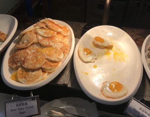香格里拉住了2天,一顿午饭和2顿早饭都是在1楼的西餐厅享用的。 标准的五星级酒店,单面荷包蛋,鸡肉肠,蔬菜🥬等等标准的菜色水准都不错,当然还有温州特色的温州糯米饭,真的是好好吃,糯米饭加上酱汁加上卤肉,早饭绝对吃的卡路里超标了。 中午的自助午餐有三文鱼刺身,甜虾刺身,清蒸小鲳鱼特别的新鲜,味道很鲜美。牛排🥩羊排也都供应很足,只要等着就能等到。 吃的比较满意,服务的也比较满意。