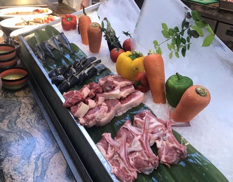 各大海鲜烤肉应有尽有,从一进餐厅,就洋溢着过节的气氛,服务员和厨师们忙碌的身影,玲琅满目的取餐...
