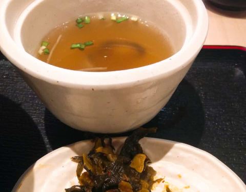 我喜欢这个味道,微甜,肉排很嫩,有肉汁,挺好吃的,加点辣酱也不错,咸菜一般,汤还凑乎吧,盖饭真的不错,喜欢