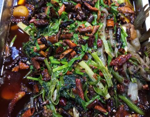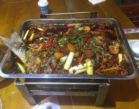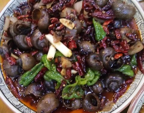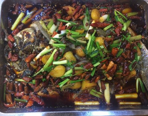 鱼是现选现杀现烤,烤制之后再放入辣椒,花椒和其他辅料进行烹饪,肉质鲜嫩!在经过木炭的加热后,鱼皮和鱼和辣油完美结合,美味!辣子田螺值得推荐!虽然看着油,但口感还不错! 这里菜品种类超级丰富!凉菜、...