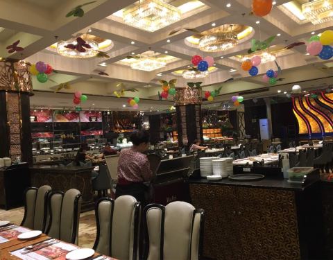 这家自助餐厅在当地有着很不错的人气,环境雅致,晚上还会有歌舞表演等。菜品种类比较丰富,服务也挺到位,有求必应,可以说是很有性价比了。