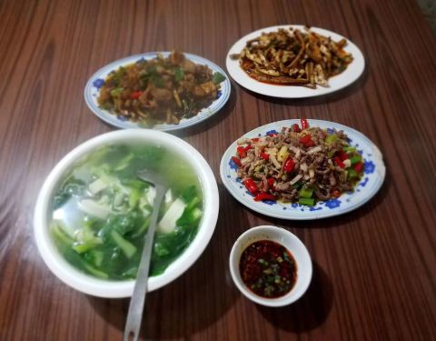 点菜是作业本子上自己写,写完递给老板 泡椒鸡杂,泡椒牛肉丝,火爆腰花,豆腐菜汤,实实在在的家常风味,配上颗粒松散的甄子饭,狼吞虎咽地刨了两碗饭之后,我的感觉是,离得近,我会常来,离得远嘛,看缘分。