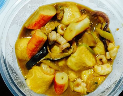软骨也做得很香很辣。海带酥肉汤很咸,里边的汤料超级多,如果酥肉再多煮一会儿更好