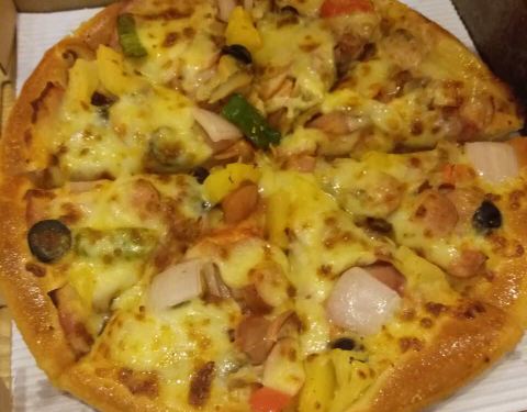 还是很不错的其实我喜欢它家的海鲜披萨和榴莲披萨,里面量足够味,各种搭配东西看得见。今天的比萨也很不错,喝的也不错