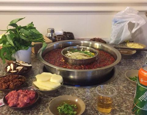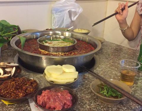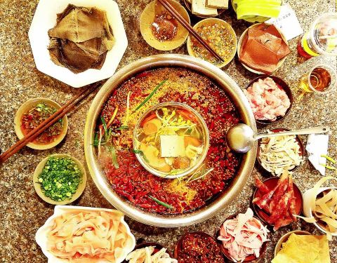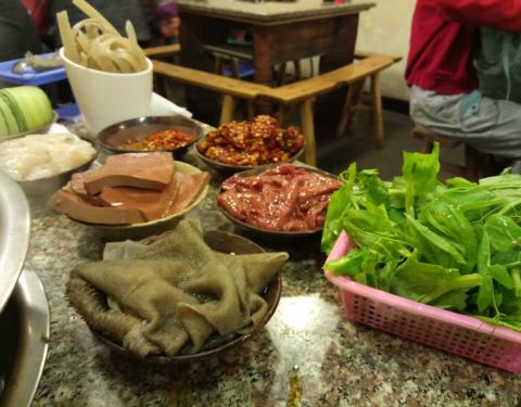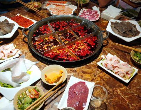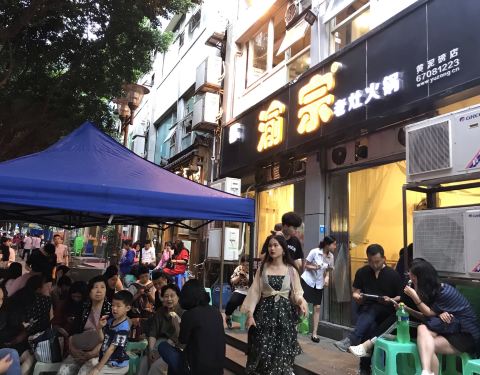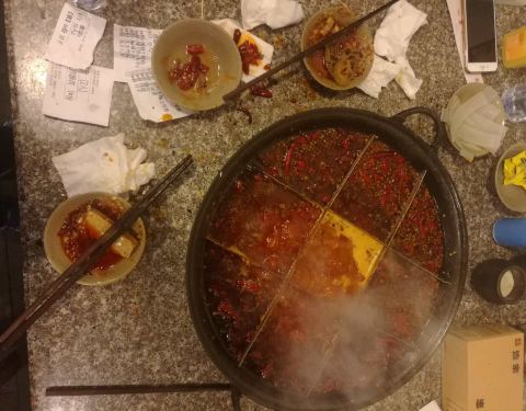 距离酒店很近,前台妹子推荐过来,九点多去人排了好多,大约要等四十分钟,就先去逛街,十点钟回来还是排了一大堆人,棚子底下坐满满的。这次等了大概半小时终于吃到了。 要的鸳鸯锅,没想到白锅也是辣的,自助配调料,汤底越煮越浓越辣,味道还可以谈不上惊艳。服务仅限于擦桌上菜,排队时提前点的菜上不全得追着要,茶水没提供也是专门要来的,免费白米饭打完了也就打完了,店家也没有继续供应的意思。 可是食客们多是本地人,一大拨人吃到兴起高谈阔论旁若无人,空气里充斥着荷尔蒙和烟草的味道,或者这是山城的一种打开方式吧。