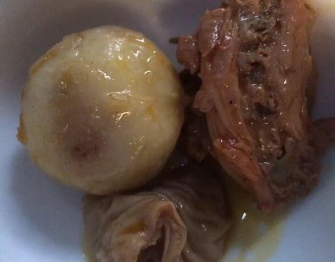 在巷子卡卡里面,是个老居民楼坝子,搭了几个棚。鸡和肥肠搭配在一起,格外的好吃。里面的芋儿耙惨了又好吃。晚上去也是要排队。