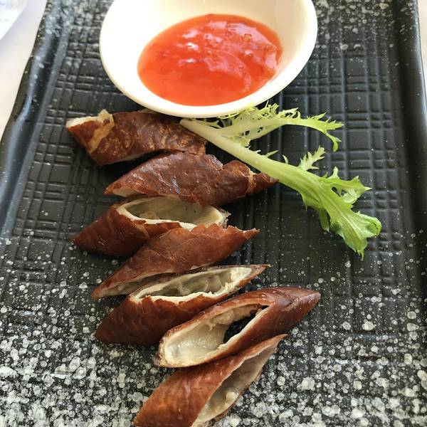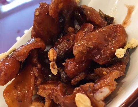 家嫂慈菇片皮鸭,与传统的脆皮鸭有所不同是加入了时令慈菇与腊味,一口咬下去,外脆里嫩,鸭皮在嘴里噼啪作响,超级满足。