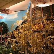 夏宫餐厅被打造成一个极富现代艺术感的用餐场所,其灵感来源于中国传统水墨画及福州名人辈出的三坊七巷的图案。