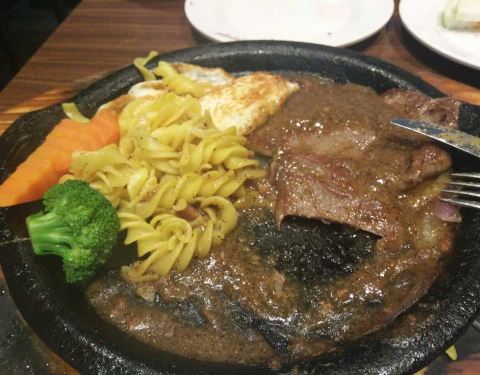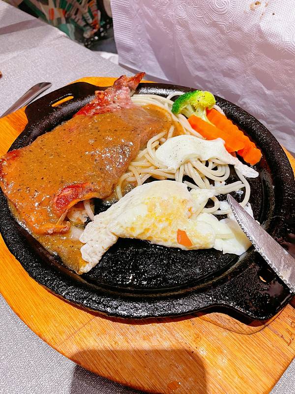 凡塔斯招牌沙朗牛排,因为来自牛的肋脊部柔嫩肉,所以油花多且分布均匀,七分熟刚好,入口较嫩,加上黑胡椒汁,口感很Q。
