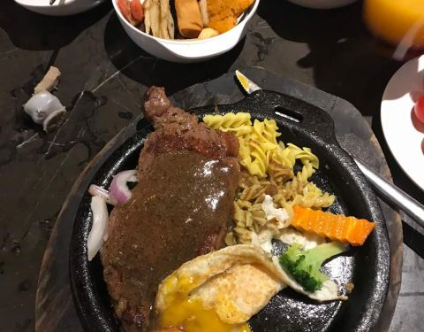 牛排口感好,自助丰富多样,饮料纯正正宗,热食赞。