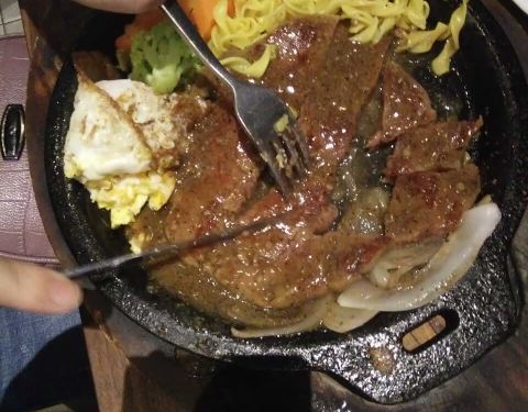 服务态度好 就是其中一份牛排血淋淋的我跟服务员说了也拿去加工了不错