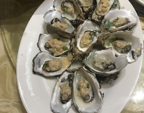 又来禾盛啦,还是点我爱吃的烧鹅,这个是这里的招牌菜之一哦,几乎桌桌必点,皮脆肉嫩的(而且提前预定一例只要13元哦),另外还有蒸生蚝,作为广东人的我,比较喜欢原汁原味,蒸生蚝最能尝到生蚝原本的鲜甜,个头不大,但是够新鲜,这里的每份菜都很大份,建议多人来点多几样菜,基本都不会踩雷的。