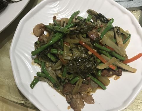 ...上这道菜,吃一口满嘴很香,豆角和茄子火候刚好…不会太过… 今晚的一顿农家菜不错,果然值得推荐~
