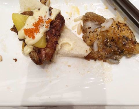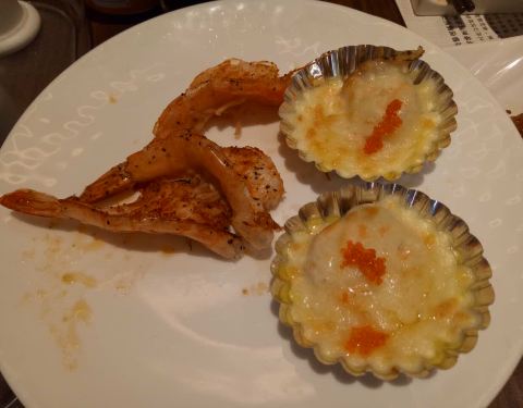 鳕鱼不错,三文鱼刺身也不错。鹅肝老了……虾有点糊……