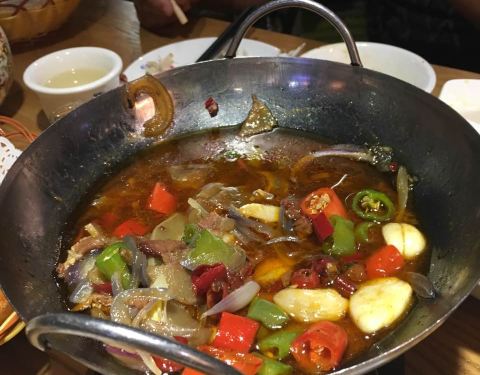 依然愛吃羊排。第二次來這分店,完全記不得第一次吃了啥了。不過本人比較推薦羊排,河蝦,還有豆角茄子。總體不錯。反而平時很愛吃魚的我,感覺不發愛吃這款水煮魚。