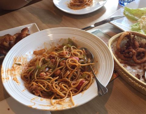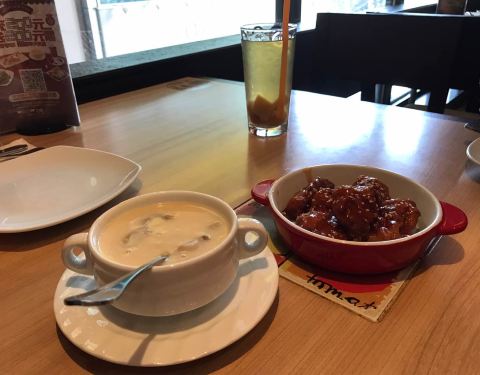 新出的麻辣小龙虾意面喜欢吃辣的极力推荐 酥炸鱿鱼还是原来的味道好好吃 下午茶无限续杯就是爽