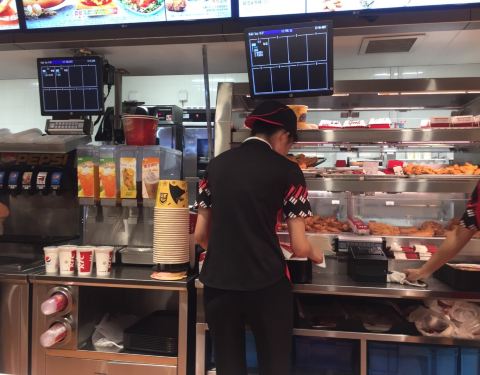 看着还不错环境卫生都还不错,第一次在肯德基吃米饭,感觉还可以吧,服务也挺到位的,只是配的菜是冷的