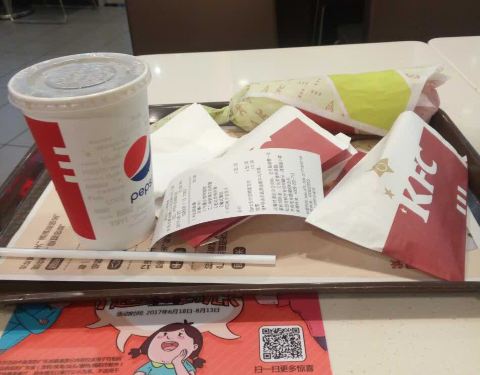 ...晚饭,吃完烤鱼以后,觉得还有胃镜,于是想起来还有一个肯德基的单人餐,于是就过来兑换这一家肯德基