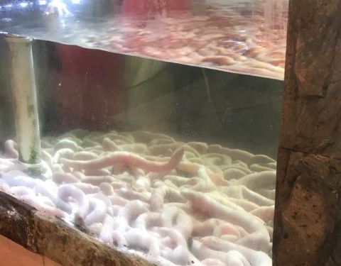 - 头一次看到海肠比较好奇,然后服务员热情的把我们安排在了展示柜最近的一个桌,服务态度很好,就是有点嗨趴