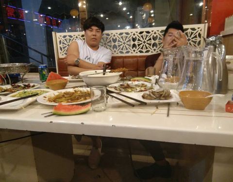 头一次看到海肠比较好奇,然后服务员热情的把我们安排在了展示柜最近的一个桌,服务态度很好,就是有点嗨趴