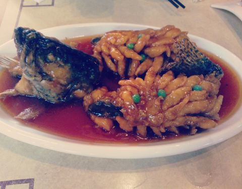 这是去青岛下的第二顿馆子。 来之前就在点评上以及蚂蜂窝上恶补了很多攻略,都提到过这家老字号。 百年老店。虽然网上的评论褒贬不一,但是出于对百年老字号的敬仰,我们还是决定抽空去拜访一下了。 地方的话说实话有点偏,我们坐车转了几下,再跟着导航走了蛮久才找到,在一个家具店边上。 过去的时候有种走到山穷水尽之处突然遇到桃花源的感觉。 所以坐下来之后就开始一刻不停的点菜,因此也有点超量,人均130左右,算是在青岛比较贵的一顿了。 作为招牌菜,松鼠鱼不得不去品尝,价格也比较招牌 168元一条,但是照实是令人惊艳的。 茄汁配合着渣的松脆的松鼠鱼一起嚼起来特别的棒,连我这样平时不太爱吃鱼的人都有点爱不释口,最后打包回酒店当夜宵了哈哈哈。 炸虾仁同学很喜欢,很新鲜~ 我的话偏好蛋黄的菜色,但是可惜这次点的有点失策,蛋黄香芋条口感太甜了,一点也不像以前在松江大学城吃的那种感觉,不过还好后来冷掉了很好吃= = 还有蒸饺也挺不错的~就是上的比较晚了我们都差不多吃得饱了,没有特别的印象。 对了这边有很多地方有无线网,名字起的很有特色,地球欢迎您,海王星欢迎您,这样。。笑死我了