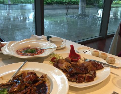 服务和菜品很好,服务的小姑娘很贴心,在做徽菜美食节,抱着试试看的想法,点了臭鳜鱼和毛豆腐,味道正;还有就是值得一提的是环境超棒,吃过饭到湖边走一走,惬意的周末!