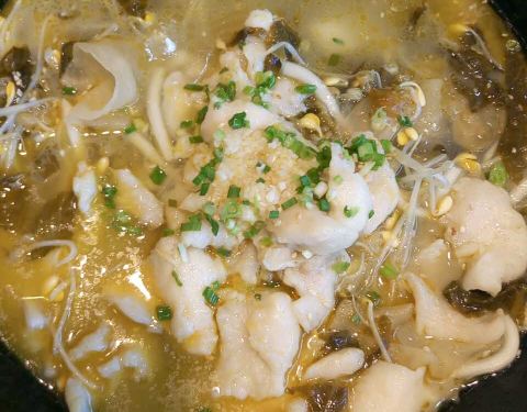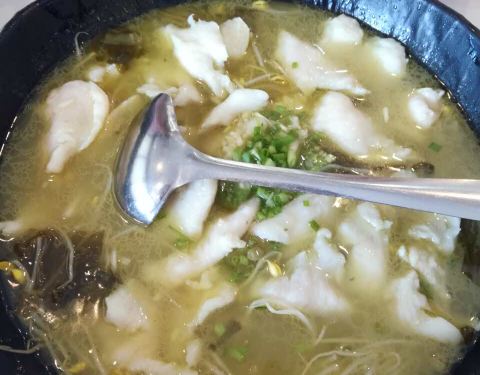 想吃酸菜鱼就去好人,鱼量不大但没刺,可以放心的给孩子吃。喜欢吃他们家的脆肠。