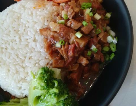 位置还不错,没想到酸菜鱼非常大一盆,俩人吃够够的了。还买了卤肉饭都吃不完了。
