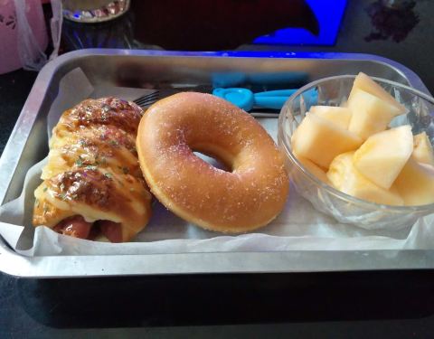 - 还不错哦。一个下午吃这么多。抵扣了10元实际用了14.5元。一个甜甜圈,一个火腿面包两盒饼干