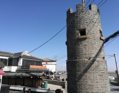 这家“光辉小海鲜”酒楼位于上海市金山区沪杭公路6402号金山嘴海鲜一条街(亭卫南路),不要看酒楼地址平淡无奇,走到酒楼门口才发现不得了,原来这家光辉小海鲜就在金山嘴老街的入口右侧,紧靠金山嘴游客服务中心,正对金山嘴的海塘,酒楼门口还有以前的一座小碉楼,识别度很高。