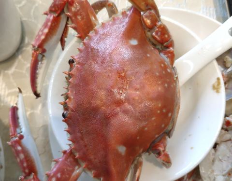 ...午饭,三个人点了八个菜有点多,摆盘精致海鲜新鲜,梭子蟹清蒸最好了,鲍鱼炖蛋很鲜,铁板蛏子一般了