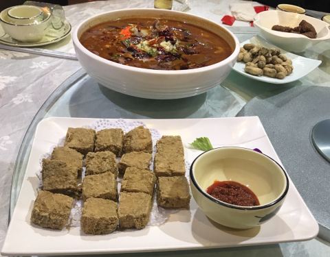 南祥老街走出来就是,早上开门很早,10点半就迎宾吃中饭了. 环境一般,服务员一问三不知,点了个水煮鱼,等了半小时也不见上菜,问之,则曰:鱼没有了!晕! 连鱼都没有,没有也就罢了,当场说明下么,还不吭声,让一桌子人等了个半天. 卫生间在二楼,一楼食客还得跑上楼用卫生间.卫生间很小,好象只有三人能用. 主要是介绍下菜的味道了,非常难吃的菜,这么差的厨师,如何营业啊.长此以往,根本没有回头客,只能有不知道情况的旅游观光客去. 非常差的味道!!!! 绝对不要进入用餐! 冷菜加热菜十多个,只有冷拌黄瓜味道不错,还有点心南瓜饼也可以,其他菜实在不敢恭维拉. 菜都非常非常甜,比无锡人吃的正常甜还要甜上个十倍! 好难吃的冷菜熏鱼! 甜是甜得无以伦比!!! 油面巾炒番茄,又是甜得你无法入口!!!!! 红烧肉一如既往地那个甜得来,象放了半碗糖!!!!看看一大罐,实则只有六到七块肉,很肥很肥,加了两个蛋. 建议大家不要进去用餐!!! 否则绝对后悔!!!!!! 唯一的优点是饭店里有免费WIFI,可以上网! 可以开发票.