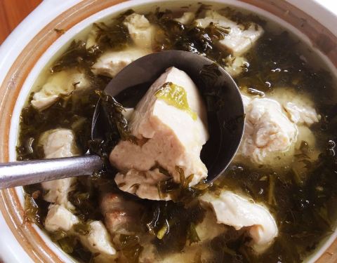 ...近,这家真算不错的,野菜、野生鳝鱼都做得不错,就连一个简单的酸菜豆腐汤,一上桌就被大家瓜分完了