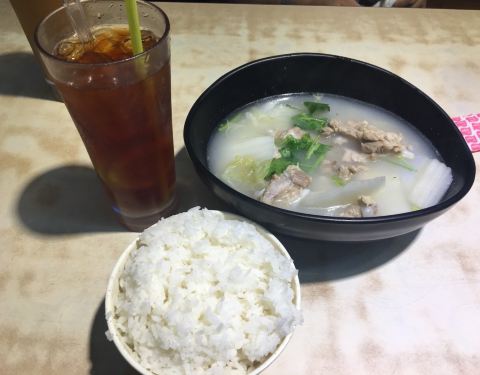 软骨汤饭是小雨天的招牌菜,汤饭嘛,一开始以为饭已经泡在汤里的,结果端上来汤是汤饭是饭。汤的确是很棒,己经熬到奶白色了,排骨上的肉多得太实在了,我觉得吃太多肉了。而且汤里还有很多大白菜,虽然白菜梆子...