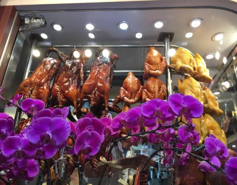 这家龙记就在中环三联书店的旁边,店面虽不大,名字却很大气,牌匾也很气派,来头也不小:获第十六届中国饭店金马奖、中国最喜欢烧腊餐厅名店称号。有没有这个饭店金马奖的评选我是不了解啦,但挂在橱窗的那些腊味,早就让我直咽口水了