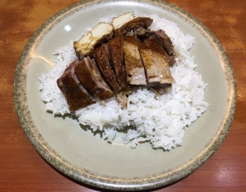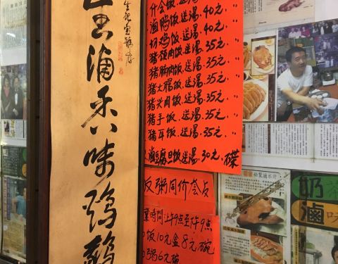 生记卤味在西营盘这一块儿是很知名的店,店里面的座位大概就只能坐下六七个人,所以大部分的当地人都是过来买外卖的。店里面贴满了老板和曾荫权的合照,虽然说曾荫权现在已经是阶下囚了,但毕竟也曾是知名的公众人物,也还是有一定宣传效果的。点了一盘卤鹅碟头饭45元、一份卤鸭碟头饭40元。结账的时候,老板收我们90块,还好我们头脑清醒,跟老板讲说一个45一个40。后来看一看点评,好像这家店之前也收错客人的钱。看来如果要去这家店用餐的话,结账的时候要稍微注意了。其实卤鹅的味道一般般啦。