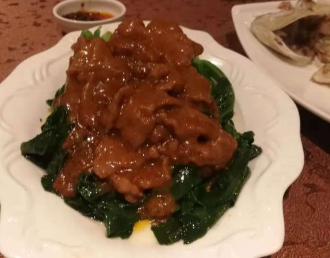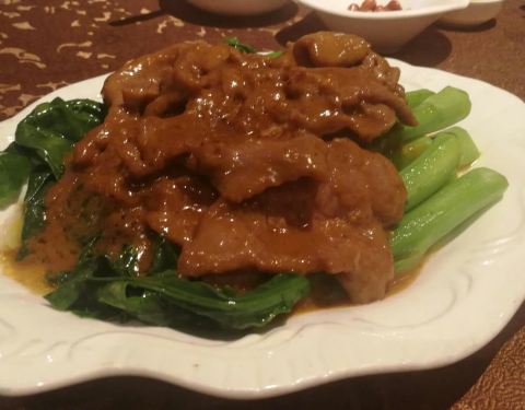 ...炒芥兰是名菜,牛肉味道好,沙爹味辣中带甜,芥兰脆爽,绿豆爽豆味不算太重,也不太甜,很好的一顿饭